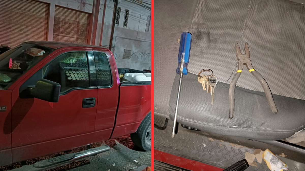 Al llegar al punto, los oficiales observaron al sospechoso detenido dentro de una camioneta roja. De acuerdo con el reporte, ya había logrado arrancar el estéreo del tablero. La evidencia era visible y coincidía con la actividad registrada minutos antes por las cámaras del C4, que seguían en tiempo real los movimientos del sujeto.