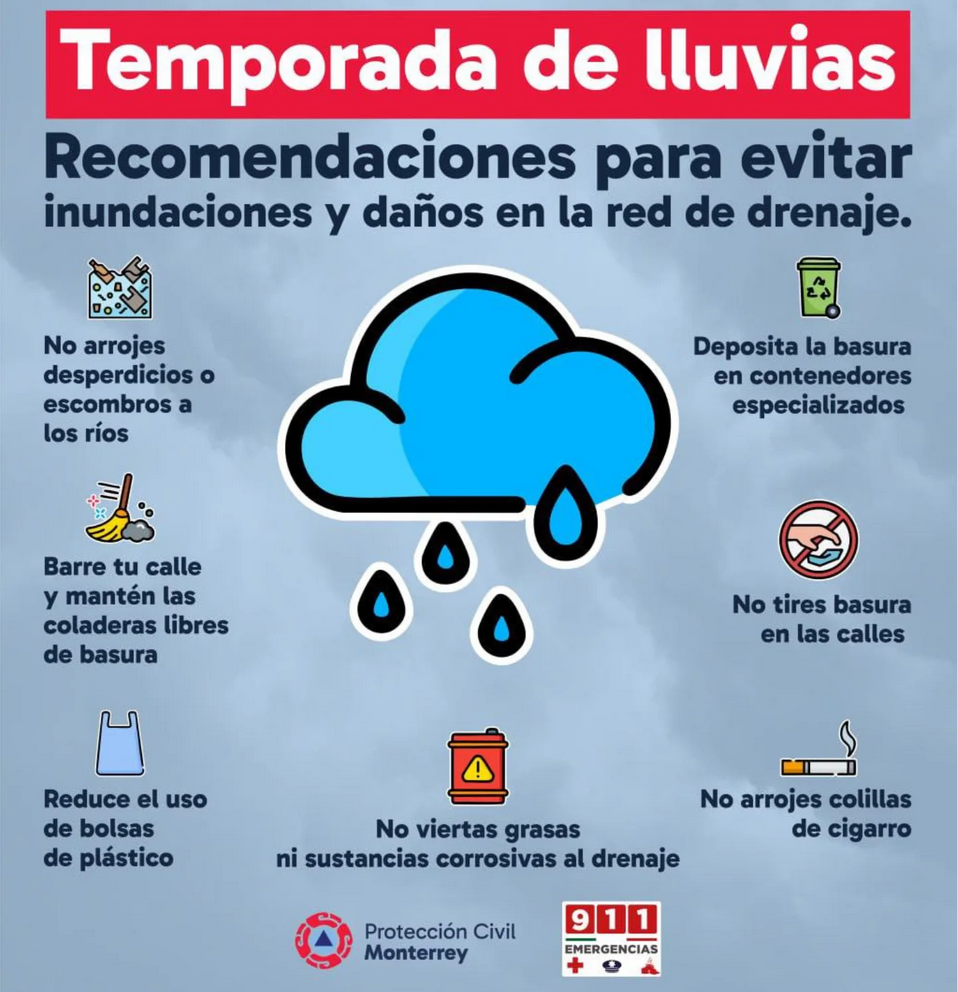 Otra medida importante es no tirar basura en las calles, ya que esto bloquea las alcantarillas y agrava la acumulación de agua. De acuerdo con Protección Civil, muchos de los encharcamientos registrados en temporadas anteriores se deben a la basura arrojada en la vía pública.