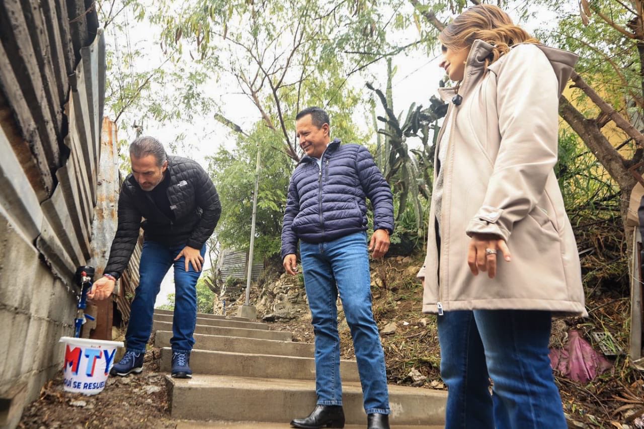 Nuestro Alcalde Adrián de la Garza recorrió la colonia Cerro de la Campana para entregar nuevas escalinatas, una red de agua potable y la pavimentación con concreto hidráulico que hoy hacen más accesible y segura esta zona emblemática de Monterrey. 🚰🧱 pic.twitter.com/2nF9XgAVzc