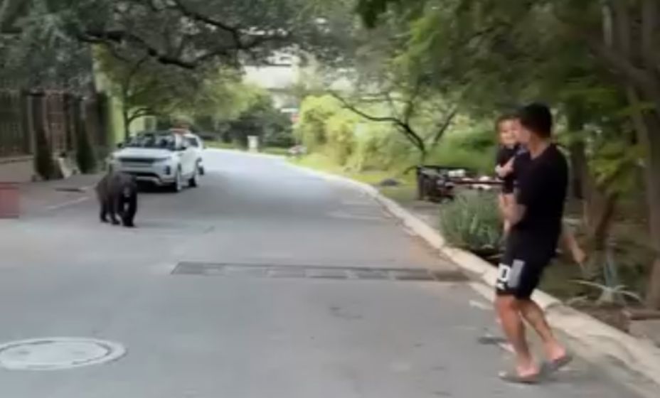 La escena ocurrió mientras el jugador caminaba por su colonia. De pronto, un oso apareció en su camino, lo que obligó al delantero a retroceder de inmediato. Con su hijo en brazos, Correa actuó con cautela y se alejó lentamente del animal para evitar cualquier incidente.